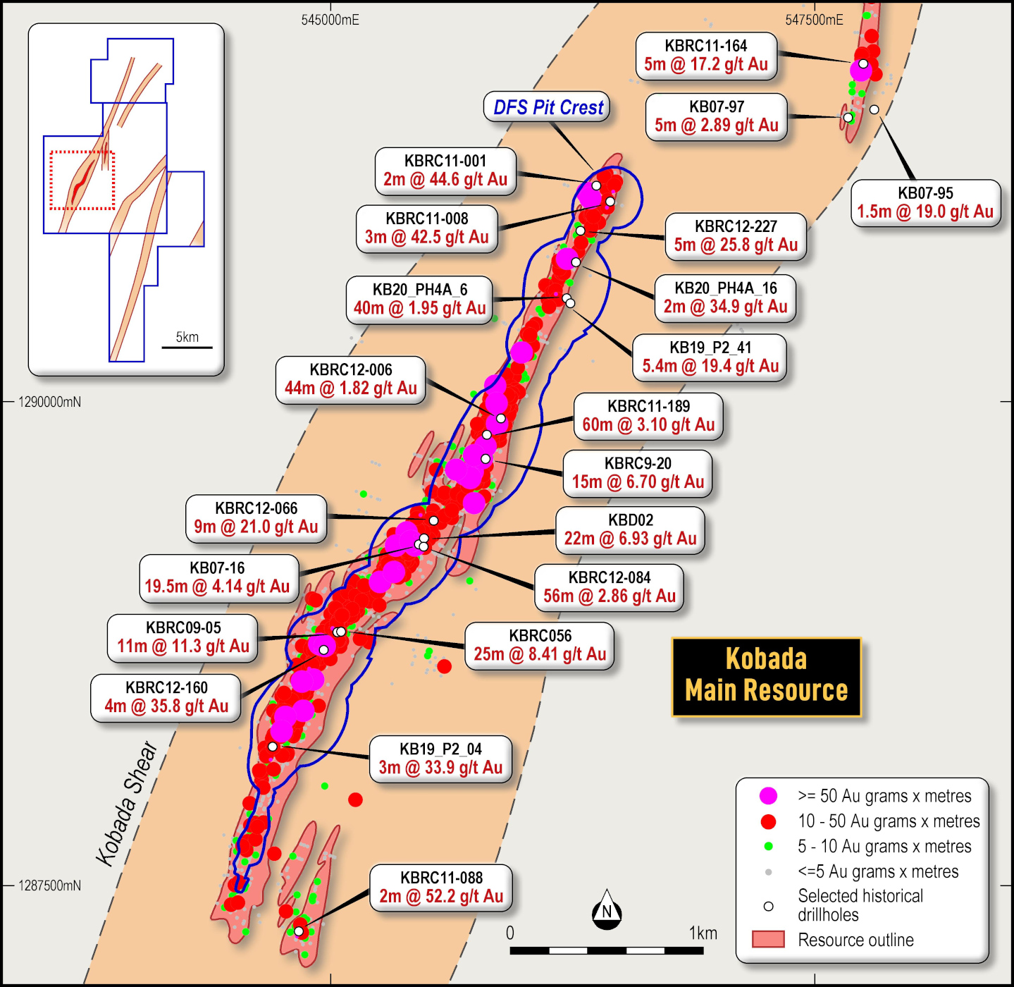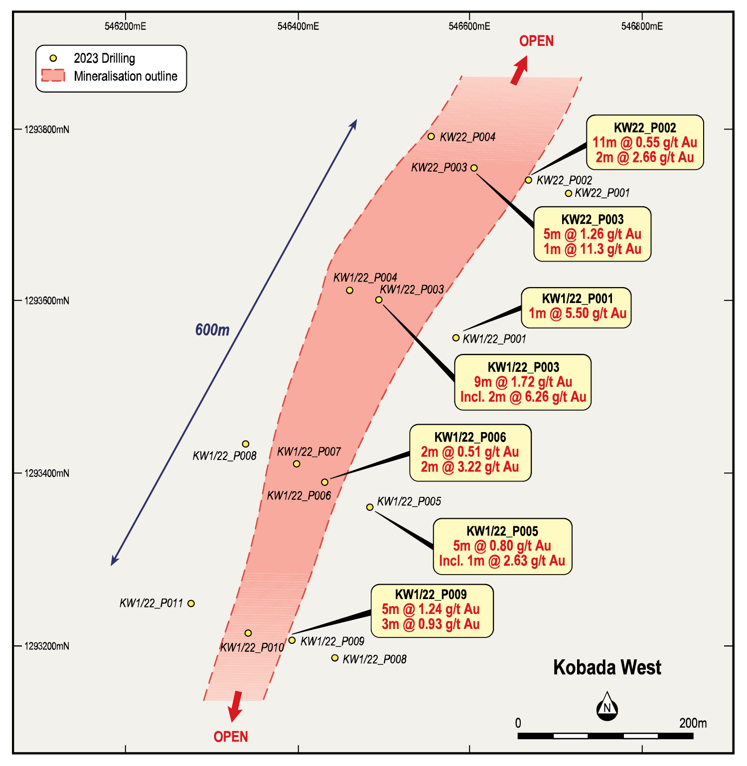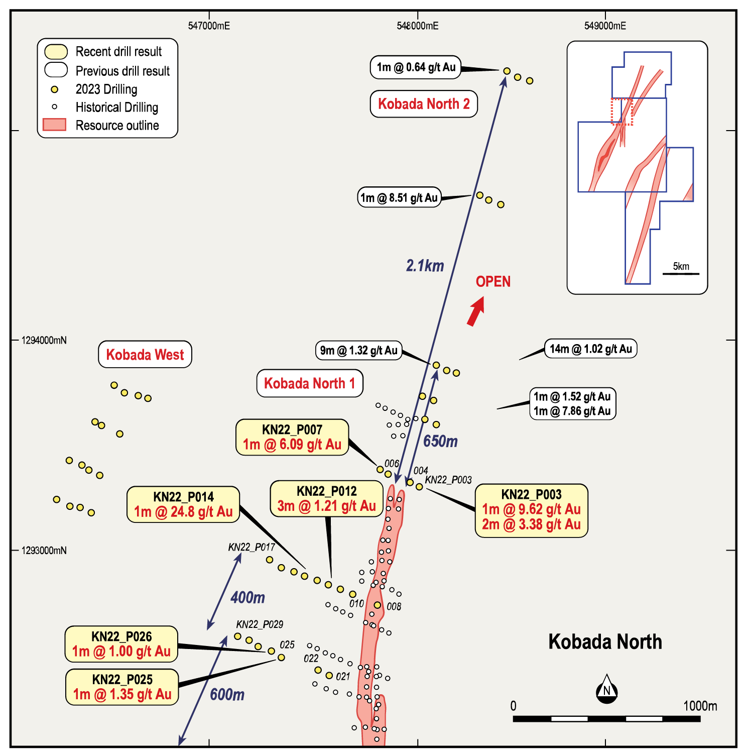 Kobada remains open along strike in both directions and at depth